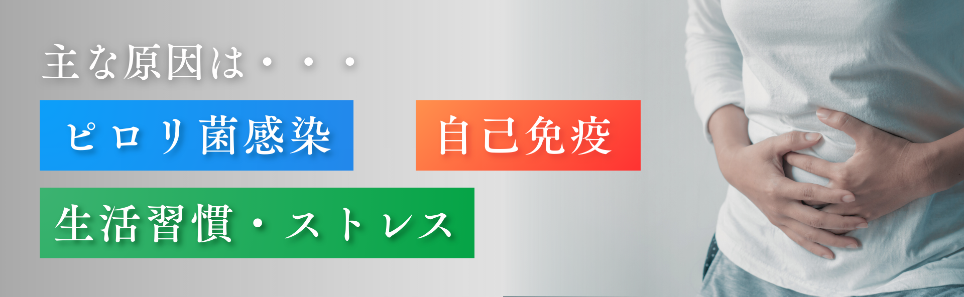 萎縮性胃炎はさまざまな要因によって発症しますが、中でもピロリ菌感染と自己免疫の関与がよく知られています。