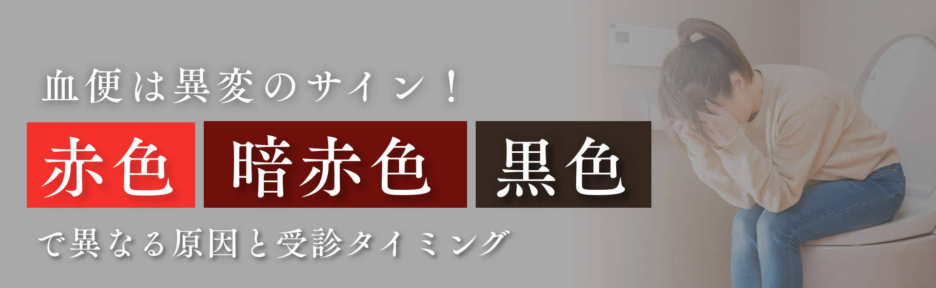 血便は便に血液が混じる状態を指し、肛門近くからの出血が原因となる場合は鮮やかな赤色を、消化管の奥からの出血の場合は暗赤色や黒色を呈することが多いです。単なる痔の症状と思っていても重大な病気が潜んでいるケースもあるため、色や量などを正確に把握して早期に専門医の診断を受けることが望まれます。