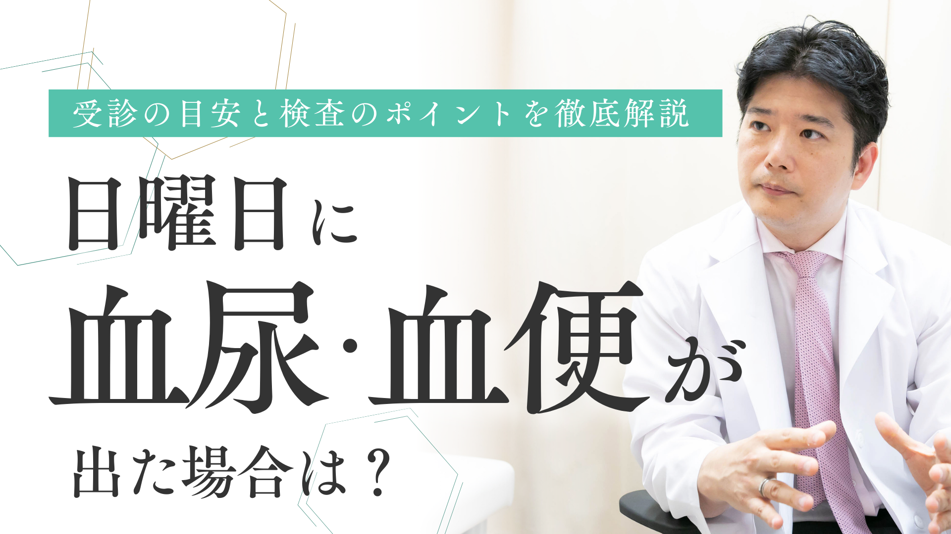 血尿や血便は日常生活ではあまり経験することのない症状ですが、一度出現すると不安になるものです。特に休日に症状が現れた場合、診療をしているクリニックを探すのは意外と難しくなりがちです。こうした状況で迅速に対応してくれる医療機関の情報を知っておくことはとても重要です。