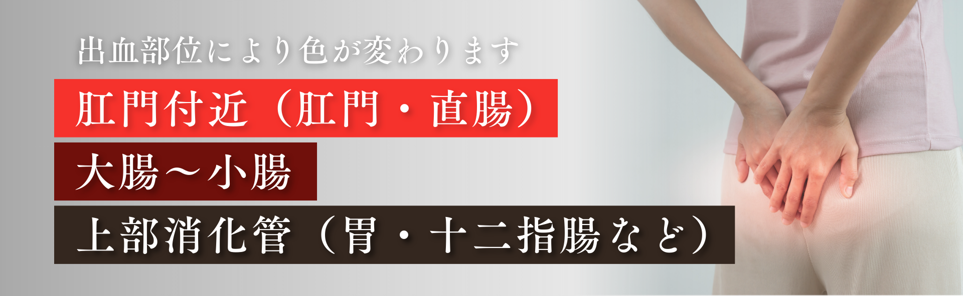 血便には様々な色合いがあり、その違いによって出血部位や疑われる原因を推測する手がかりとなります。