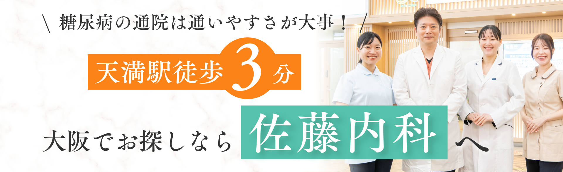 大阪市北区天神橋にある佐藤内科クリニックでは、糖尿病専門医が日曜に対応しており、忙しい方でも定期受診が可能です。