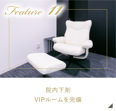大腸カメラを受ける方のために、院内下剤専用のスペースを完備しています。さらに、VIPルームも完備し、ラグジュアリーな空間でリラックスして検査が受けられます。